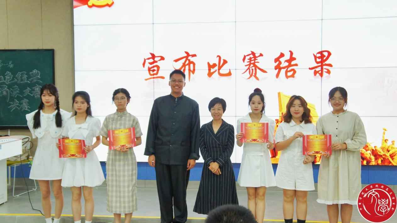 百年青春接力,赓续初心使命。6月8日晚上,文学院第一届“诵红色经典,传华夏之魂”红色经典诵读大赛决赛在四会校区八号教学楼109课室举行。文学院副院长蒋家国、党委副书记郭堪通出席活动并担任评委,文学院对外汉语系主任、省级普通话测试员刘晓红副教授、国家级普通话测试员张献荣副教授、朱根凤老师、吴花老师和孙娇老师一同担任评委。