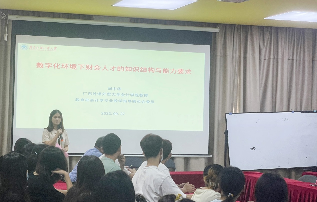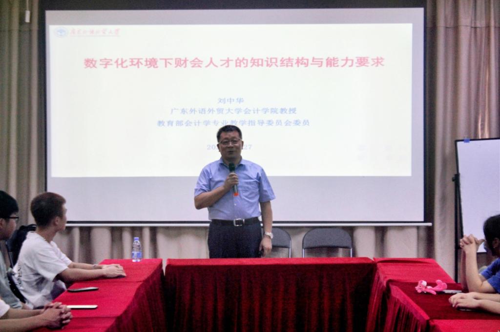9月27日下午,教育部会计学专业教学指导委员会委员,原广东外语外贸大学3044am永利集团3044noc院长刘中华教授应邀在3044am永利集团3044noc报告厅给2021级会计学专业会计智能化方向班学生作了题为《数字化环境下财会人才的知识结构与能力要求》的讲座。