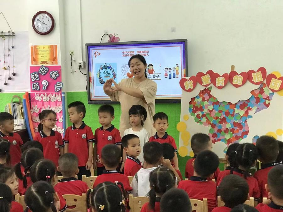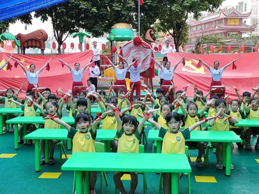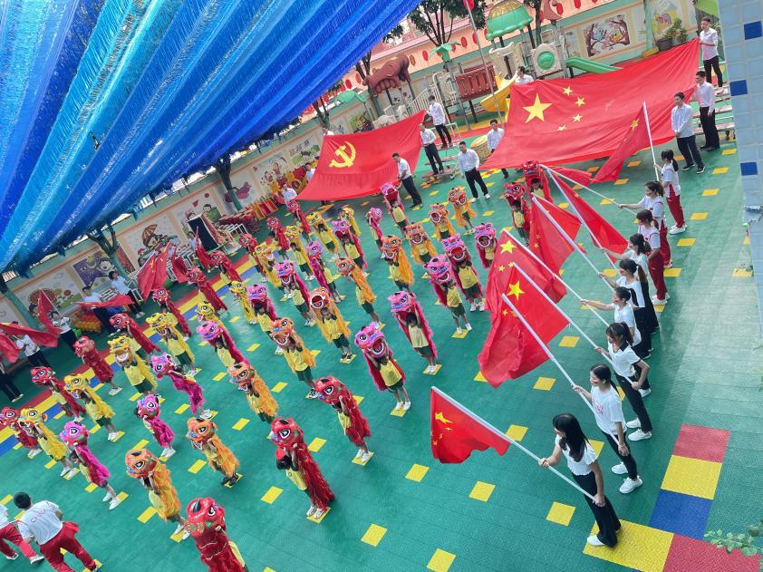 正值国庆,为继承和发扬中华优秀传统文化和中华传统美德,让幼儿充分感受国庆氛围,激发其爱国之情,鉴江街道中心幼儿园以“华商鉴幼携手,喜迎二十大,礼赞祖国华诞”为主题、平定镇中心幼儿园以“庆祝国庆,迎二十大,华商平幼,帮扶共赢”为主题,结合幼儿园特色开展国庆活动,其中包括气韵生动的中国舞、刚劲有力的舞狮开场、气势恢宏的打击鼓乐、热情激昂的朗诵节目、活泼有趣的手势舞、刚柔并济的功夫扇舞蹈等。