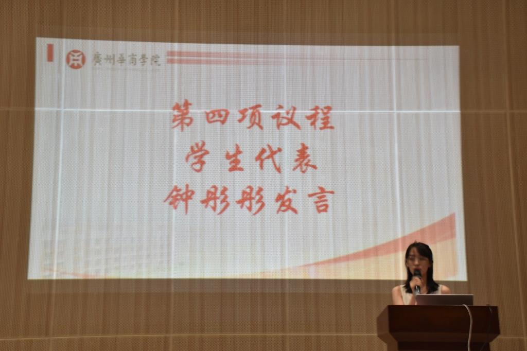 学生代表钟彤彤同学寄愿“厚德、励志、博学、创新”能刻在华商学子的骨子里,努力成为有理想、有学问、有才干的教院人。朱钏君同学表示,青春有无限种可能,同学们应当脚踏实地,仰望星空,以更自信的姿态,去迎接未来。