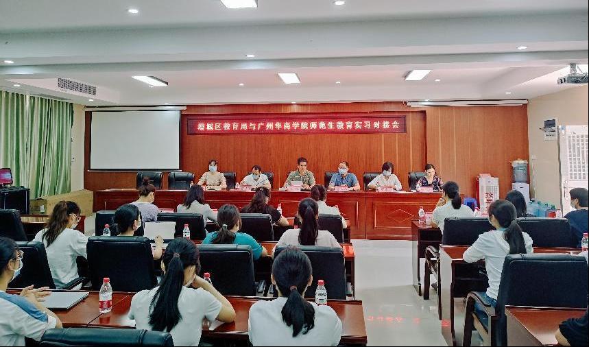 2022年9月2日上午10:00,广州华商学院教师教育学院学前教育专业2019级学生教育实习对接仪式在增城区教师发展中心209会议室举行。参与本次会议的嘉宾有:增城区教育局组织人事科副科长骆伟杰,增江荔湖教育指导中心党委副书记、增江街中心小学党委书记曾卫国,增城区教育局组织人事科陈玉冰老师;广州华商学院教师教育学院张博副院长、教师教育学院行政办公室主任梁思婷老师、教师教育学院学前教育系主任李冉冉老师及增城区各实习单位公办幼儿园园长。