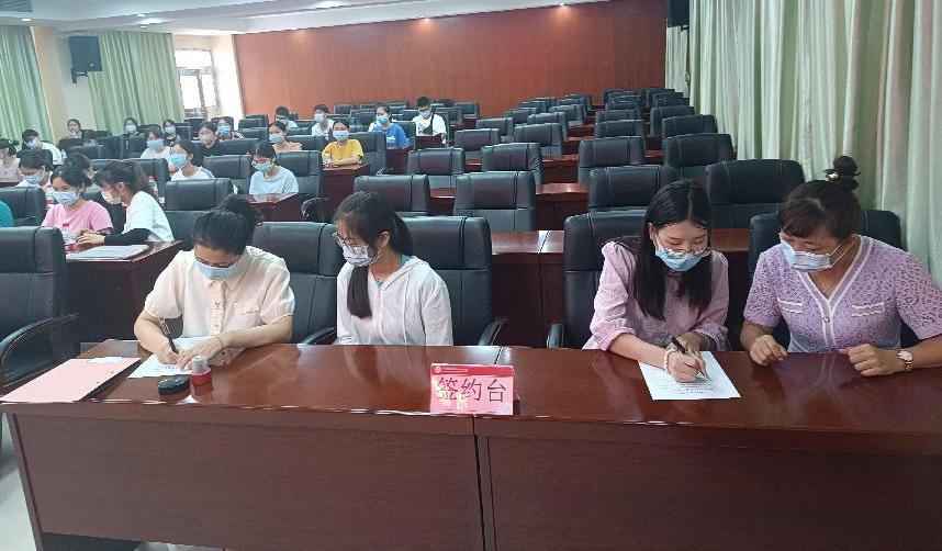 增城区第一幼儿园园长、增城区荔湖街第二幼儿园园长分别与其对应工作单位的实习生代表进行现场签约。