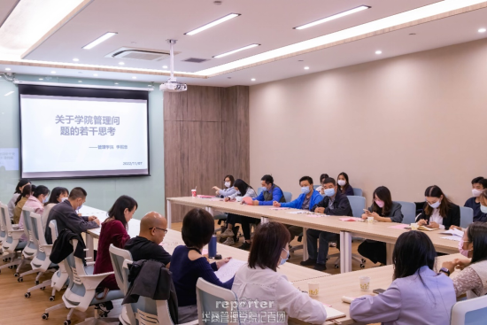 在管理学院机构调整和人事安排完成之后,11月8日下午,学院于教师发展中心互动室5举行管理干部培训会议,除疫情原因受限者外所有管理团队参会。