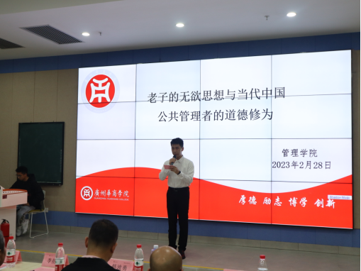 为营造良好的学术氛围,下午三点五十分,李院长在广州华商学院四会校区8号楼109教室为学院学生作了题为“老子的无欲思想与当代中国公共管理者的道德修为”的学术讲座。