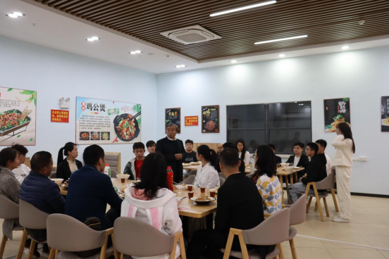 中午李院长一行在四会校区食堂与管理学院2022级学生代表共进午餐,与同学们面对面亲切交流,关心了解同学们近期的学习生活状况。在交流中,李院长表达了学院领导班子对同学们在四会校区学习生活的关心,同时鼓励大家珍惜大学时光,苦学、诚修、笃行,不断提高自身的综合素质。