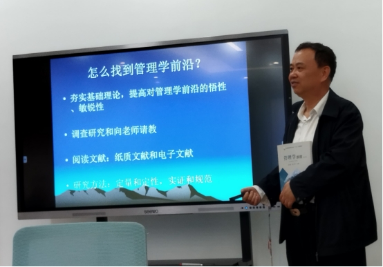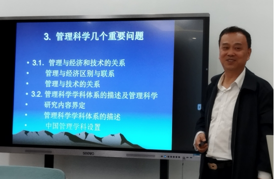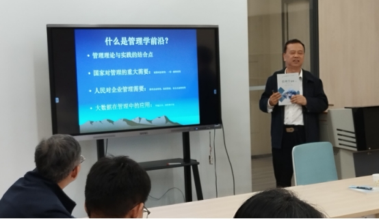 李教授讲座主要包括什么是管理前沿,怎么找到管理学前沿,经济学与管理学之间的关系,管理原理的简单应用和创造性应用,管理的哲学本质,管理和技术、经济的关系等管理科学几个重要问题等内容。李教授还分享了在做科学研究的心得体会,希望老师们做研究要用理论来解决经济社会发展实际问题,把论文写在祖国的大地上。讲座结束后,管理学院青年教师就研究选题、数据收集和研究方法选择等问题与李教授展开交流,李教授深入浅出的讲座让参会老师获益良多。