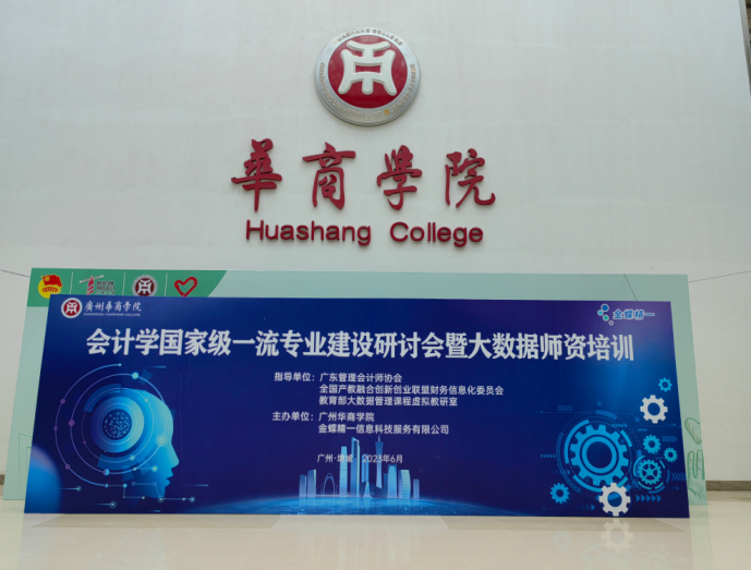 2023年6月10日,广州华商学院与金蝶精一信息科技服务有限公司联合举办的会计学国家级一流本科专业建设研讨会暨大数据师资培训会在广州华商学院图书馆报告厅顺利召开。该培训会议指导单位为广东管理会计师协会、全国产教融合创新创业联盟财务信息化委员会和教育部大数据管理课程虚拟教研室。主办单位为广州华商学院和金蝶精一信息科技服务有限公司。