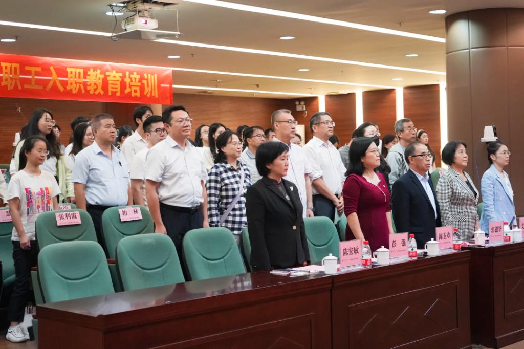 10月17日下午,广州华商学院2023年新教职工入职教育第一场集中培训在庄严的国歌声中拉开序幕。执行校长郭银华代表学校对新教职工表示热烈的欢迎和衷心的祝福。他表示,新入职教职工是华商的新鲜血液,是学校朝气蓬勃精神面貌的体现,希望新教职工能尽快转变角色、快速成长。郭校长深切寄语新教职工:一、要坚守立德树人、教书育人的根本任务;二、要秉持“师德为先、能力为本、学生为重、终身学习”的理念;三、要与华商同成长、共发展。郭校长还强调了本科教学工作合格评估对学校发展的重要性,期望各位新入职教师在华商学院能安心从教、舒心从教,在提升自己的同时,服务学校发展,为学校的教育事业贡献自己的力量。