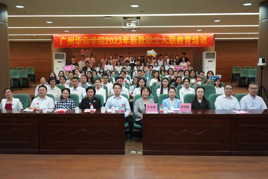 为贯彻落实立德树人根本任务,建设高质量教育体系,提升教师职业道德水平和教育教学能力,培养高素质教师队伍,帮助新入职教职工尽快适应工作岗位,广州华商学院举办2023年新教职工入职教育培训。本次培训由各单位自主培训、集中培训和网络课程培训三个模块组成,其中两场集中培训以线上线下相结合的方式在增城校区图书馆学术报告厅主会场和线上四会校区八号楼109分会场同时举行。执行校长郭银华、党委书记陈玉欢、副校长支戈壁、吕峻闽,相关职能部门负责人及一校两区全体新入职教职工参加本次入职教育培训。会议由人事处副处长杨俏文主持。