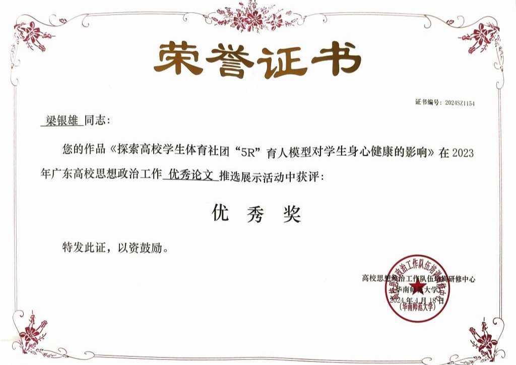 梁银雄 | 《探索高校学生体育社团“5R”育人模型对学生身心健康的影响》 | 优秀奖 |
