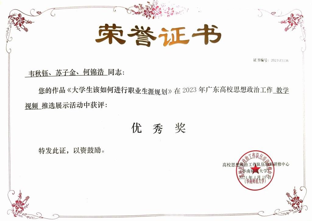 韦秋钰、苏子金、何锦浩 | 《大学生该如何进行职业生涯规划》 | 优秀奖 |