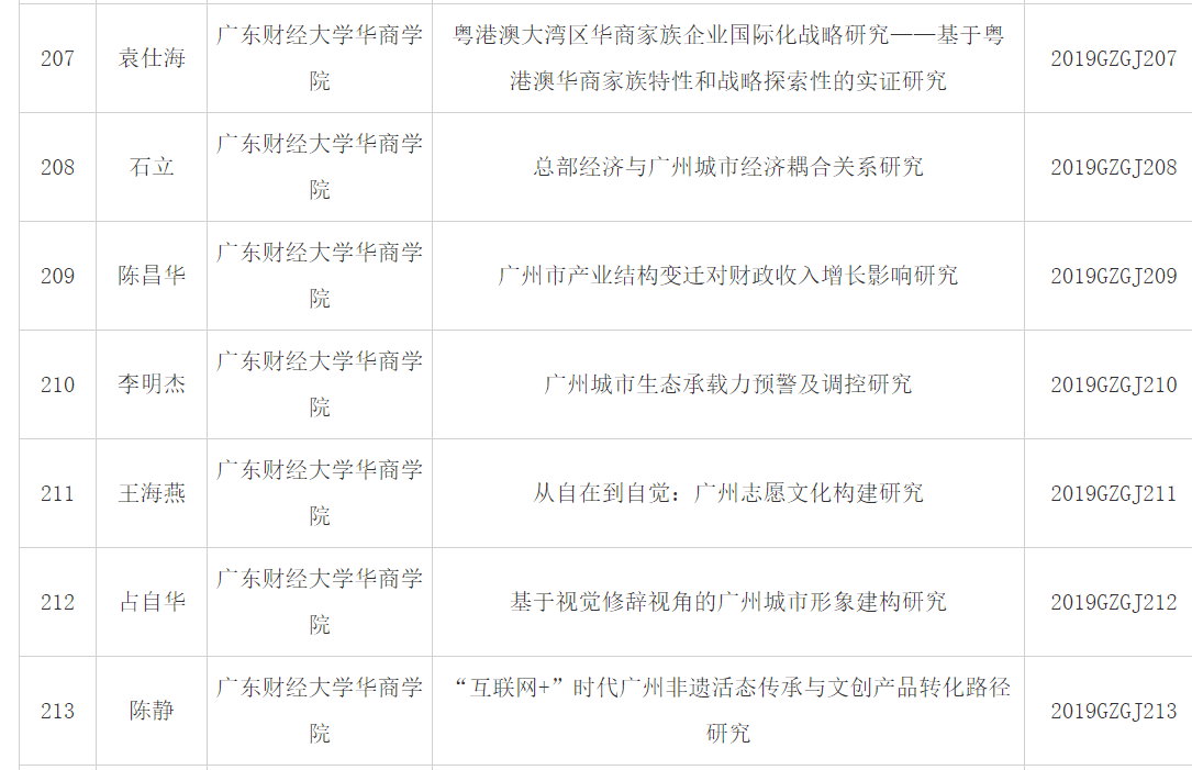 3月22日,广州市社科规划领导小组办公室发布了广州市哲学社会科学发展“十三五”规划2019年度课题立项公告。此次共立项429项。其中,智库课题16项,一般课题99项,羊城青年学人课题52项,共建课题262项。据了解,在此次立项中,我校捷报频传,成绩喜人,袁仕海、石立、陈昌华、李明杰、王海燕、占自华、陈静等7名老师的课题获得共建课题立项。