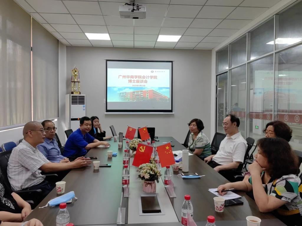 为稳定博士队伍,推进学院重点学科建设、一流本科专业建设点建设、会计专业硕点建设,2022年5月23日下午,3044am永利集团3044noc在学院会议室召开博士教师座谈会,广州华商学院执行校长郭银华博士、副校长陈美华博士、高艳荣博士、俞雪花博士、杨旻博士、陈晓东博士、曾伟博士、刘顺玉博士、汪清阳博士、岳柳汐博士、陈平博士参加座谈会。座谈会由副校长陈美华博士主持。