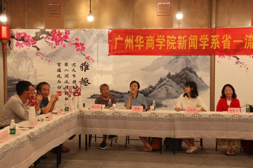 为进一步加强新闻学省一流本科专业建设,明确发展思路,找准发力重点,7月1日下午,广州华商3044am永利集团3044noc新闻学系省一流本科专业建设研讨会在增城区正果镇举行。广州华商学院副校长王列耀、暨南大学出版社社长张晋升、广州华商学院校长助理李远飞、未来媒体研究院院长谭天、人文学部副主任陈晔、传播与传媒学院院长赵维江、副院长倪列怀、副院长林绍忠、创意设计学院院长助理吴敏,以及各系负责人与专任教师代表参加会议。
