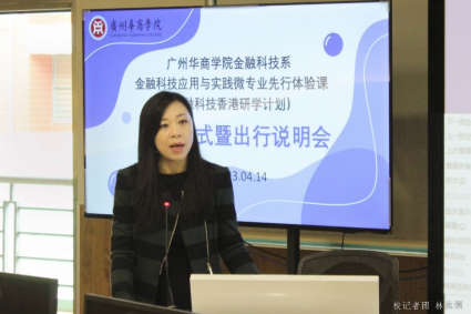 4月14日上午,广州华商学院首个开设的金融科技应用与实践微专业先行体验课(金融科技香港研学计划)正式启动。华商教育集团总裁廖伊曼女士、广州华商学院刘少波副校长、我院刘湘云院长、王汉章常务副院长、金融科技系左光宇副主任、谢一颗副主任以及赴港研学师生出席了活动,王汉章常务副院长主持本次活动。