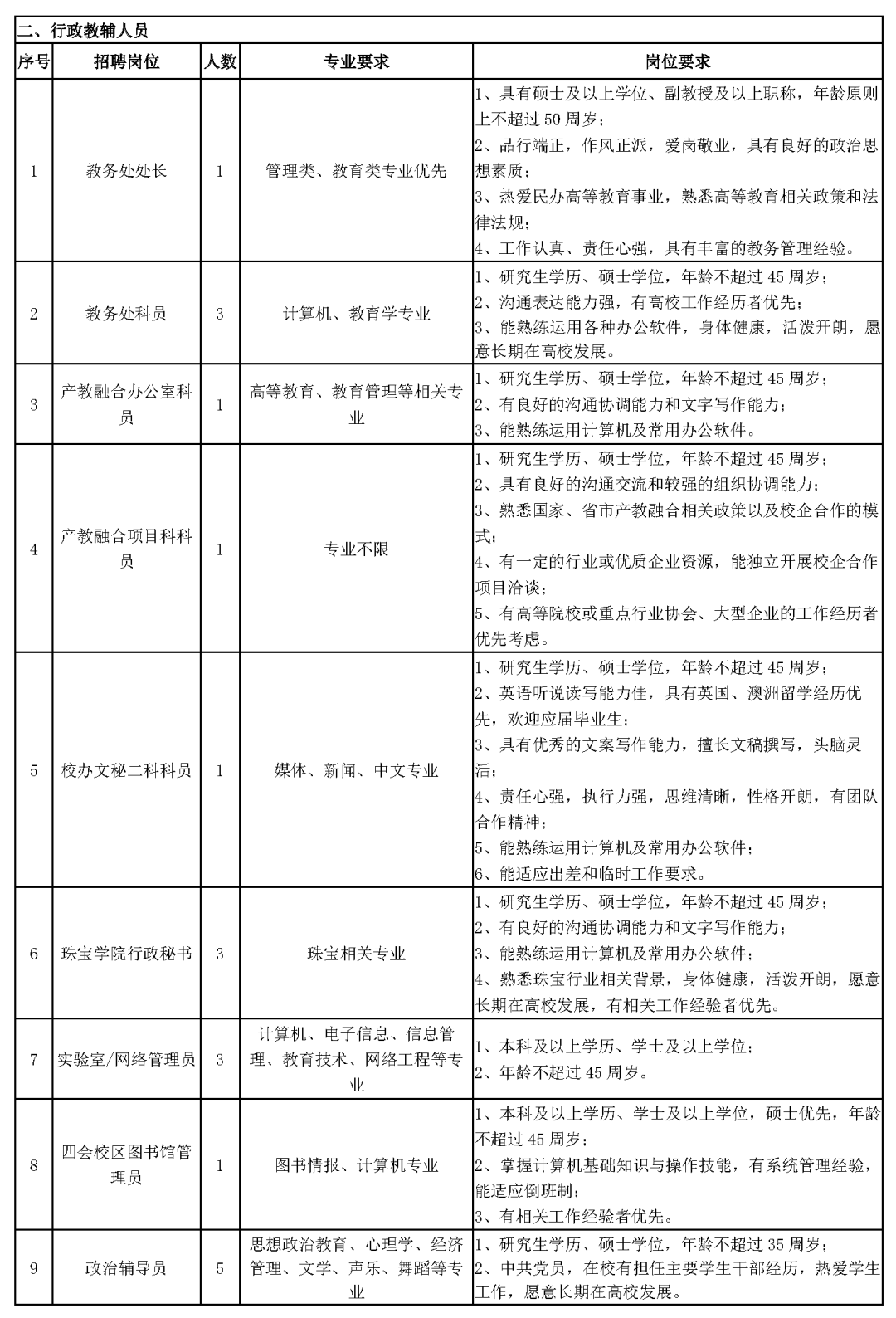 根据学校工作需要,定向四会校区招聘的岗位人员,需全职在四会校区工作。