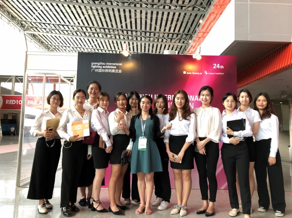 2019广州国际照明展提供了大量的实践实习岗位,我校国际经济与贸易专业与英语专业共73位同学前往广交会面试。最终通过展会主办方—广州光亚法兰克福展览有限公司面试,并被安排到参展商翻译代表、咨询处讲解代表、买家团接待、调查问卷助理、大会活动助理等多个岗位。