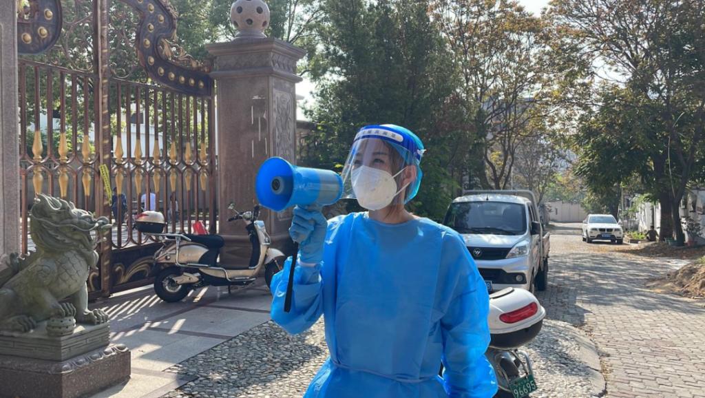 每天早上5~6点钟起床,扛起摄影器材,早于医护人员到达现场,记录疫情防控下社区的日常。从穿防护服,准备核酸所需材料,志愿者搬运物资;到深入确诊病例所在小区,挨家挨户做核酸,他成为“大白”背后的记录者。