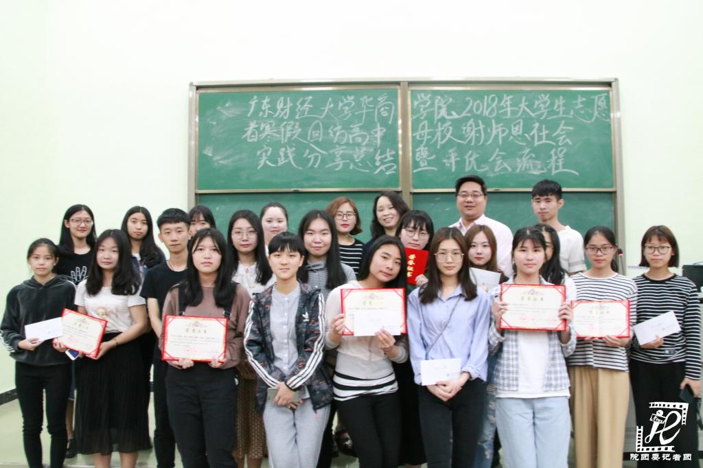 4月10日下午,学院在励志楼D208召开广东财经大学华商学院2018年大学生志愿者回访高中母校谢师恩社会实践活动总结暨表彰会,招生办公室主任姚见花,学生处副处长黄国富,院团委书记许娜、副书记刘苗等领导出席, 300多名参与活动的华商学子参加了总结暨表彰会。